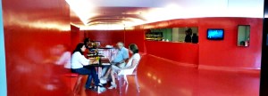 após uma “exaustiva” caminhada pela Bandeirantes, deparei com um Café. No prédio da Oi na Avenida Afonso Pena. CLARO, pensei com meus botões: “vou entrar e tomar um cafézinho. Depois de uma caminhada dessas Eu mereço.” O lugar me pareceu bastante agradável e, num é que é mesmo sô! É o Espaço Cultural Oi Futuro. São várias opções para lambuzarmos de Cultura, Artes e bater um papo agradável com gente interessante e parar de falar da invasão das favelas