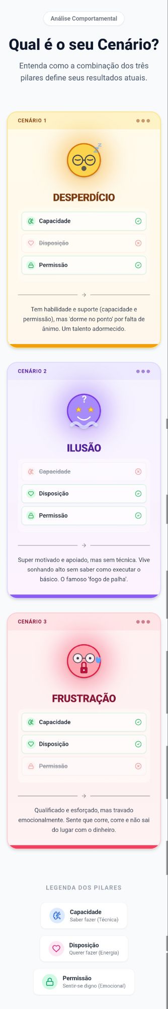 Resultado = FRUSTRAÇÃO: Quando a pessoa se qualifica e se dedica, mas não alcança os resultados financeiros esperados, por falta de permissão emocional para avançar para o próximo nível com o dinheiro que já ganha.