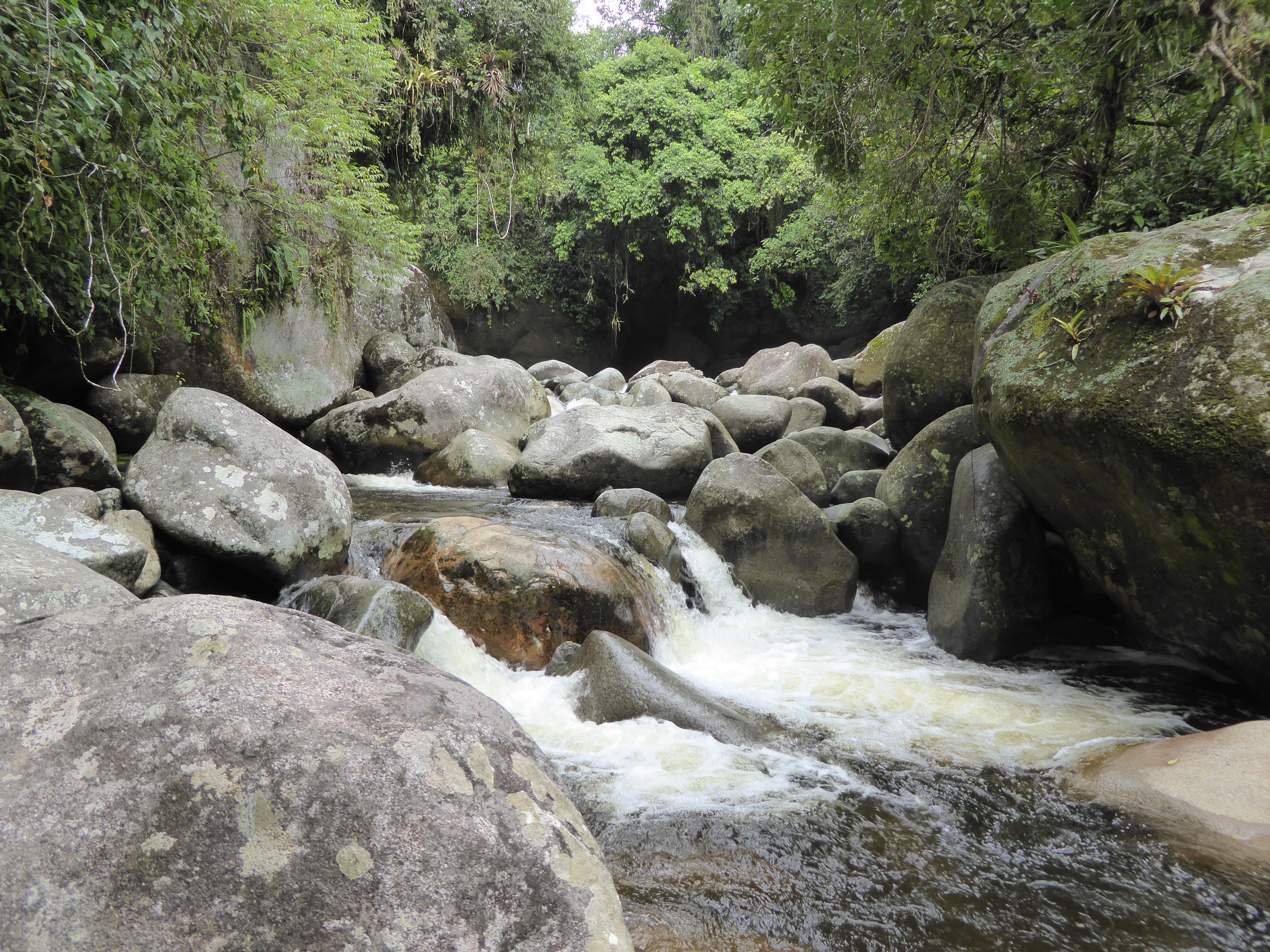 Esse é o Poço Verde. Fica no final de uma trilha leve, mas para chegar na beira da corredeira é preciso bastante atenção e cuidado, pois, as pedras são bastantes escorregadiças.